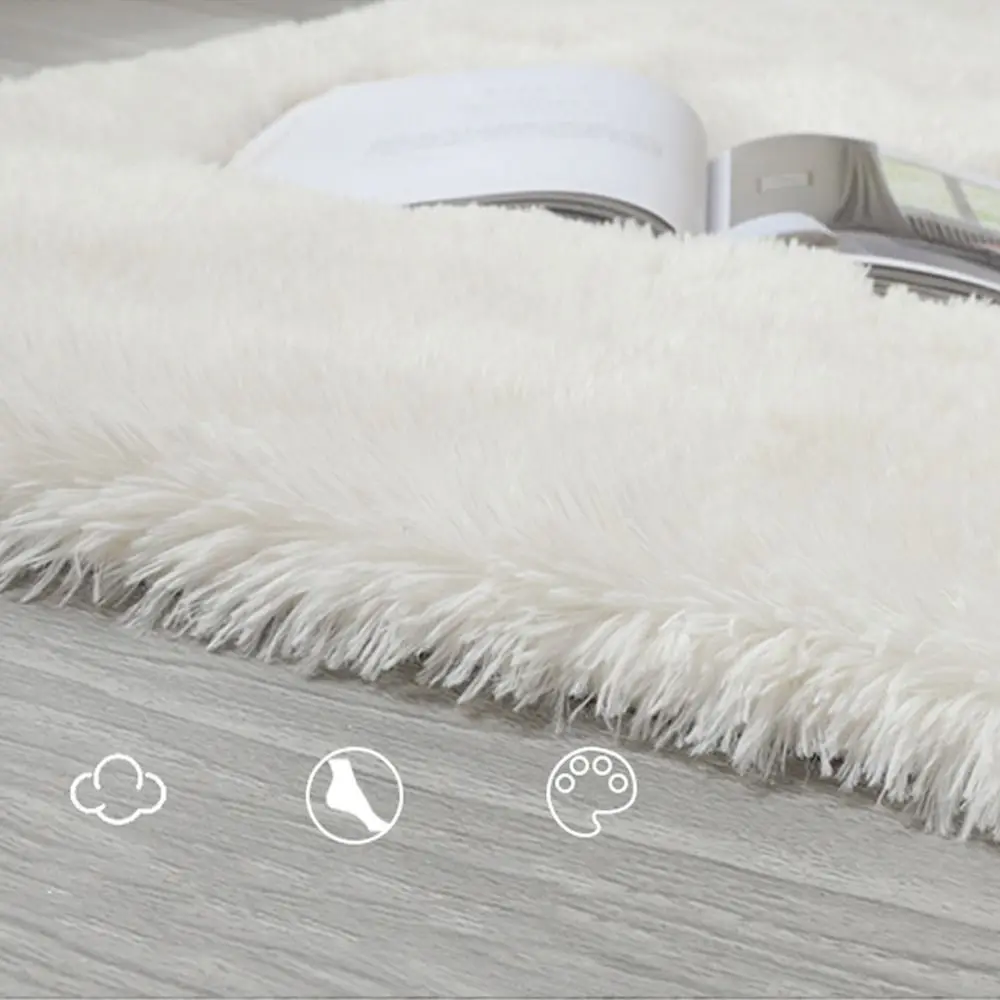 Fluffy Shaggy Imitation Wool Bedside Rugs Non Slip Floor Protection Sofa Cushion Washable Bedroom Mats Home Decor