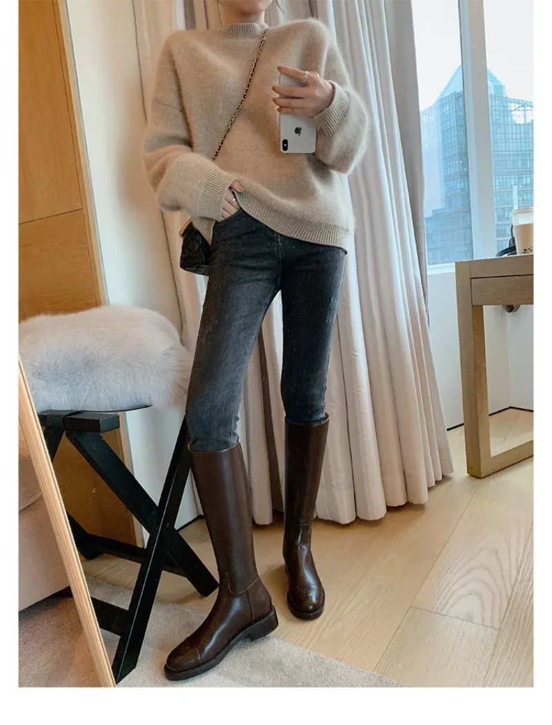 Luxury Woman Shoes Winter Round Toe Knee-High Women Boots Punk Knight Boots Women Shoes New Female Long Booties Zapatos De Mujer