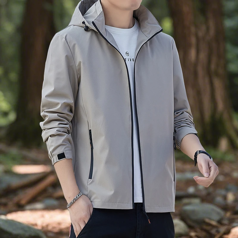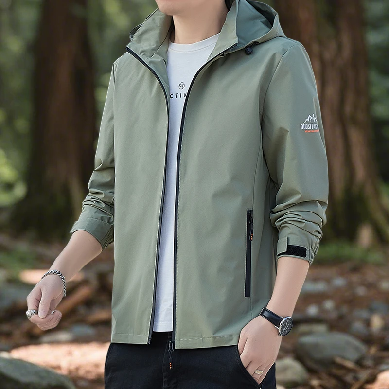 Men's Jackets Outdoor Waterproof Softshell Jacket with Hood Men Hiking Camping Outerwear Lightweight Coats Spring and Autumn